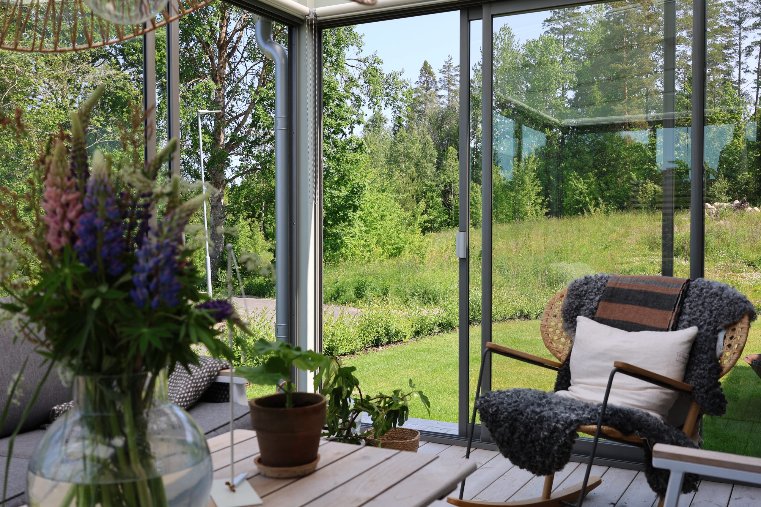 Uterum VPP Design Isoler är vårt omtyckta uterum, som du kan designa i dina exakta mått och kulörer. Uterummet har isolerglas och mjukt rundade aluminiumprofiler, som ger en behaglig upplevelse av hela rummet. Isolerglasen ser till att du får en bra temperaturfördelning, där kylan stängs ute och värmen stannar kvar i uterummet. De ställbara boggie-hjulen gör att de skjutbara dörrarna får en jämn och fin gång, samtidigt som glasdörrens tyngd fördelas på fler punkter, vilket också ger en ökad livslängd. Med VPP Design Isoler får du ett trevligt uterum, som är lätt att montera och som garanterat ger dig många fina stunder.
